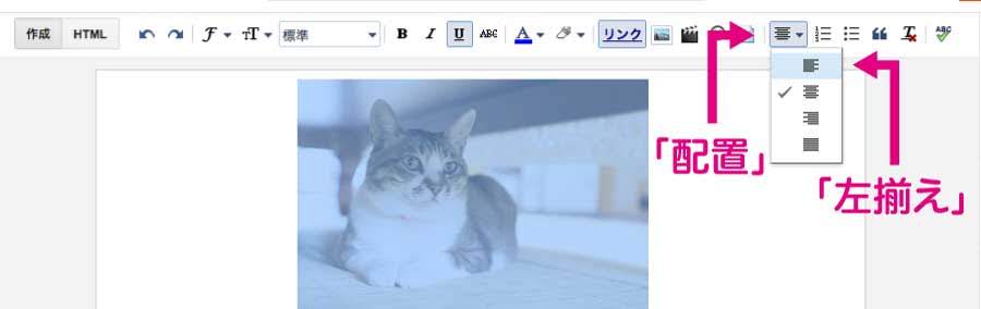 画像メニューから左寄せする